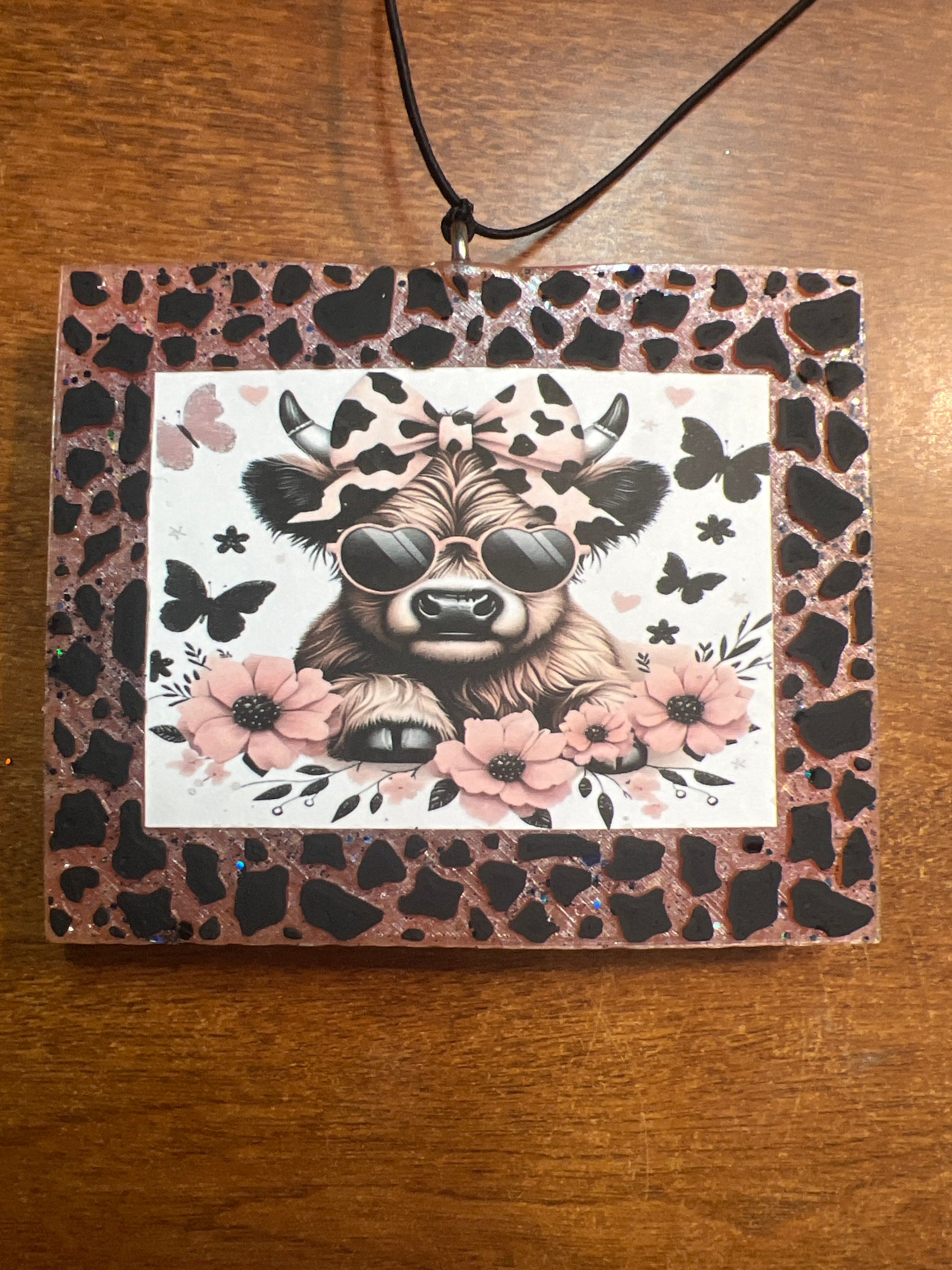 Freshie - Black Leather - Baby calf w/sunglasses on cow border freshie